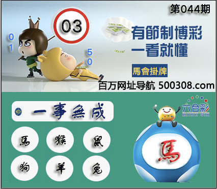 2026年044期正版彩图挂:03 爆:马 挂牌成语:一事无成 挂牌出肖:马猴鼠狗羊兔